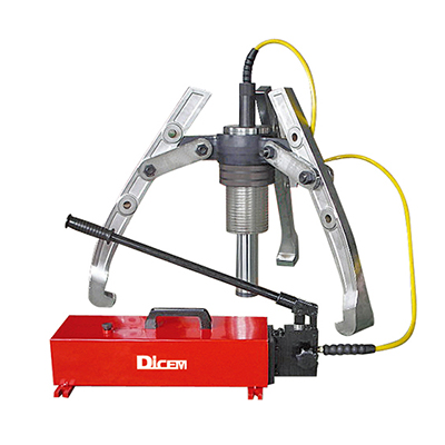 分体式液压拉马广泛适用于厂矿、油田、铁路、码头等维修场所,手动液压油泵能在无电源的情况下使用适应各种工作环境。油泵和拉马主体是由快速接头和高压油管连接的,因此操作人员操作的时候可以远离拆卸物,使用起来安全又方便,油泵采有高低压供油,无负载时流量大行程速度快,有负载时流量小压力高,拉爪还具有自锁功能。大吨位液压拉马50T-500T可采用电动油泵同时配备安装小车,车上备有锁紧装置,这样是为了保证在拉卸工作中拉爪不会滑脱张开。